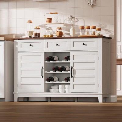 - 【Ample Storage with Adjustable Shelves】: This dining room buffet cabinet features a stylish 2-door cabinet + 3 convenient drawers for storing miscellaneous items. The adjustable shelf offers 3 height options to maximize storage efficiency as needed.