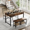 - 【Multi-Functional Dining Ensemble】This 4-piece set effortlessly transitions between dining, work, and leisure - serving equally well as an elegant meal surface, productive workstation, or gaming table. The bench-integrated design offers hidden storage for linens and accessories.The stain-resistant wood surface showcases natural grain patterns, while under-bench compartments discreetly store living essentials without sacrificing aesthetic appeal.