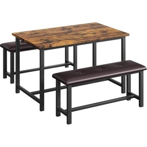 CuisinSmart Dining Table Set with 2 Benches, Dining Table Set for 4 Kitchen Table with 2 PU Upholstered Benches, Rectangular Dining Table Set