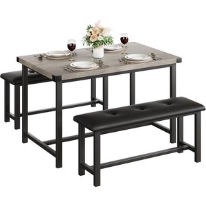 CuisinSmart Dining Table Set with 2 Benches, Dining Table Set for 4 Kitchen Table with 2 PU Upholstered Benches, Rectangular Dining Table Set
