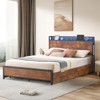 CuisinSmart Platform Bed Frame with 2-Tier Storage Headboard&4 Drawers, Built in Charging Station & LED, Noise-Free, No Box Spring Needed