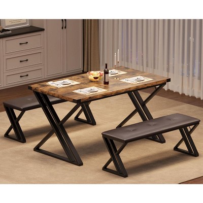 CuisinSmart Kitchen Table Set for 4, Dining Table with 2 Benches, 3 Piece Dining Table Set for Small Space, Apartment, Saving Space