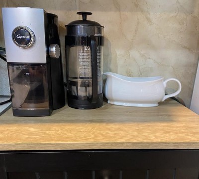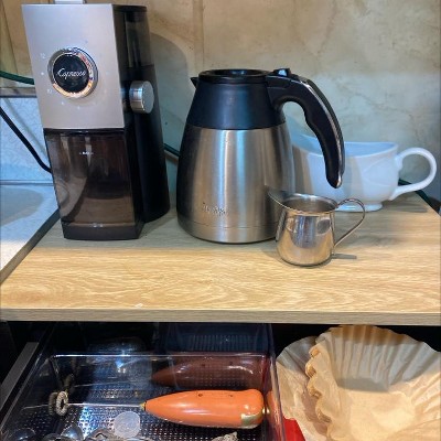I opened the box and thought , “I’ll never be able to assemble this! So many boards and screws! It sat on my floor for about a month while I decided if I would pay someone to assemble it. Finally, the day came when I said - “I’m going to build my coffee bar! I have been wanting to put a cabinet between my kitchen counter and stove. I could use more counter space. Presently, the space holds my recyclables and trash cans. I sat down looked at the pages of illustrations and committed. It took me all day, like all afternoon and late into the evening. I took my time and only went to YouTube once! The illustrations were easy to follow. And all my fears about assembling drawers and tilt doors disappeared! I’m happy that I now have a designated space to make my coffee, oh, and a cabinet for my recyclables. I repurposed my metal recyclable can. Now it holds my dogs’ dry food!☕️🧺 💪🏽