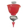 The Cuisipro 3-in-1 Funnel is a versatile kitchen tool that includes a large funnel, small funnel, and removable strainer for clean and precise pouring. Ideal for transferring liquids, filling jars, baking, and straining sauces, it offers convenience in a space-saving nested design. Durable and easy to use, it’s perfect for everyday cooking tasks.