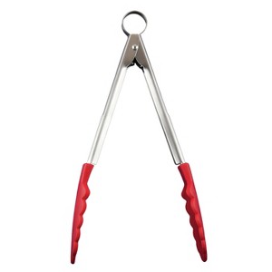 Cuisipro Silicone Locking 9.5 Inch Tongs are designed for precision and control. Designed to handle both cooking and serving tasks with ease. Easily open and close these tongs by pushing to open, or pulling to close, on the patented locking mechanism. The tongs feature a loop for hanging, or easily store in your utensil drawer.