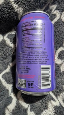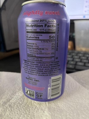 carbonated filtered water, organic juice blend from concentrate (white grape, concord grape, lemon), malic acid, sea salt, organic elderflower, natural flavor, fruit & vegetable juice for color, live probiotic (bacillus subtilis)' '