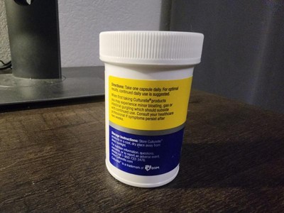 KEEP OUT OF REACH OF CHILDREN. Inform a healthcare professional before starting any dietary supplement, particularly if there is a known immune-compromised condition., When first taking Culturelle products, you may experience minor bloating, gas or intestinal gurgling which should subside with continued use. Consult your healthcare professional if symptoms persist after two weeks., Tamper Evident: Do not use this product if safety seal under cap is missing or torn.Shipping details