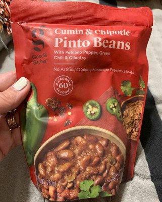 [This review was collected as part of a promotion.] I purchased this cumin and chipotle pinto beans from Good & Gather, and it is delicious! You heat it up right in the bag- and I would suggest heating it up a tad longer than it says. The flavors are honestly so delicious together, and there is a good size portion in the bag. Would absolutely buy again. I received an incentive to write this review.