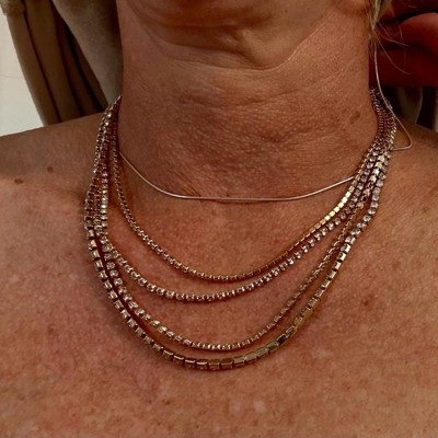 Add luxe appeal to your occasional looks by accessorizing with the Cupchain Multi-Strand Necklace from A New Day™. This gold-tone necklace features multiple strands of cupchain for an appealing look. Made of nickel-free metal to suit most skin types, this multi-strand necklace has a lobster claw clasp closure and an extender chain for a nice, customizable fit around the neck.