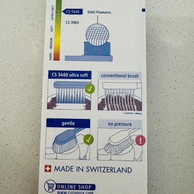 - 2 ultra soft toothbrushes with 5460 Curen® filaments (Ø 0.1 mm) each