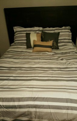 The pattern is dominated by gray shades on a white background. A simple and casual horizontal stripe is the focus for this bed with a printed texture on some bands for added depth. Items feature Truly Soft face and back material with for softness and performance you can count on. Bedding items reverse to a solid gray shade. All items are machine washable. The fabric is 100% brushed microfiber with our special Truly Soft treatment. Comforters are filled with 100% polyester fiber filling. This item is machine washable, but please be sure to use appropriate sized machinery to avoid any excess wear on the items. Includes: one twin XL comforter 68x90 inches and one standard sham 20x26 inches.