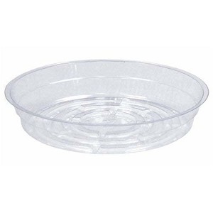 Round plant saucers for underneath pots, planters, and grow bags. Contains excess water to keep your deck, patio and other surfaces free from runoff to prevent moisture stains. Trays can also act as a water reservoir during warm weather months to help keep plants hydrated. They are made in the USA from clear durable plastic. Each saucer has an airflow bottom design that does not trap moisture or dirt under the saucer. Saucers de-nest easily; they will not stick together.