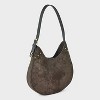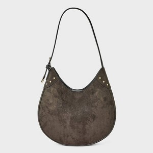 Take your essentials on the go in style with this Curved Shoulder Bag from Universal Thread™. Made from vinyl fabric, this unstructured tote bag features a curved upper with metallic button detailing on the sides for a chic, textured look that goes well with any of your outfits. Designed with a single compartment, this curved bag has a magnetic closure and single shoulder strap for easy carrying.