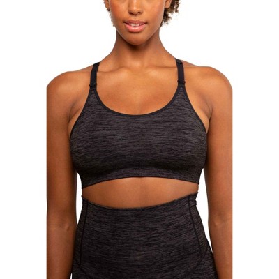 • Full coverage sports bra has a scoop neckline, smoothing sides and ballet back. Shoulder pressure is dispersed with wide, lightly padded straps. Wear classic or cross-back for a racerback bra look.