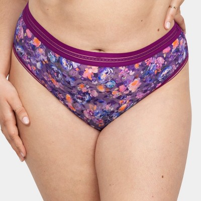 Curvy Couture Women's No-Show Lace High Cut Brief Purple Passion X Large