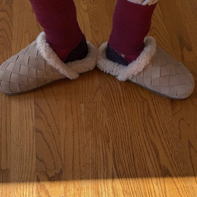 CUSHIONAIRE Cliché Genuine Suede Woven Mule Slippers for Women Indoor and Outdoor - Slip On Faux Fur Lining Women Footwear for Comfort, Biscuit 7