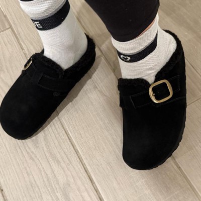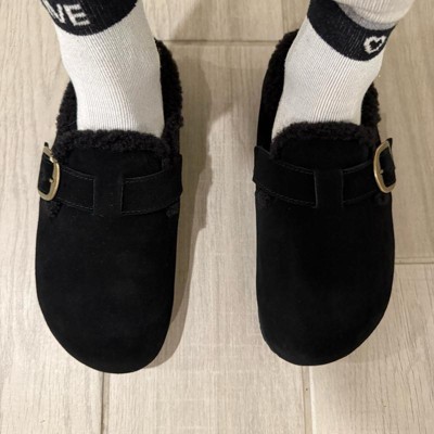 CUSHIONAIRE Haven Genuine Leather Clogs for Women – Faux Fur Lined  Slip-On Womens Shoes with Cork Footbed and Adjustable Buckle - 1 of 4