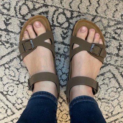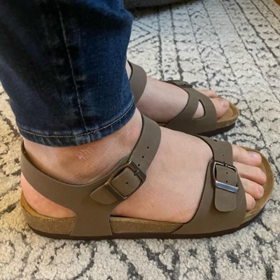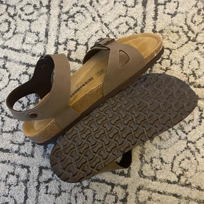 CUSHIONAIRE Lauri Cork Footbed Sandals for Women with Back Strap – Walking Style with Adjustable Buckle Ankle Strap Footbed Slides