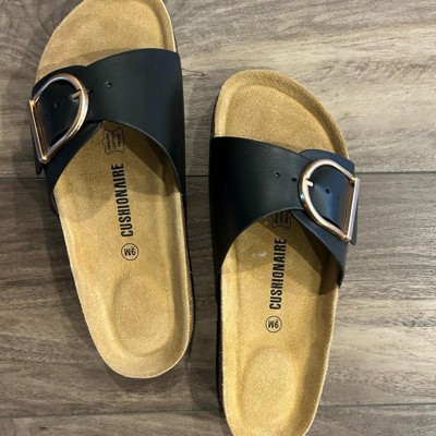 CUSHIONAIRE Leeds Sandals for Women, Slip On Big Buckle Slide Womens Sandals with Memory Foam Footbed, Comfortable Summer Footwear