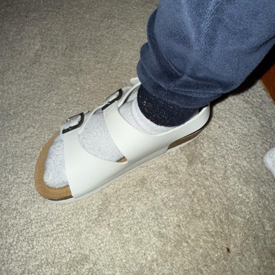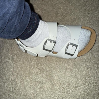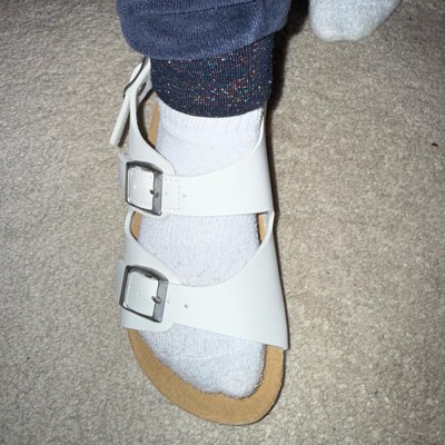 CUSHIONAIRE Liana JR Toddler Sandals with Adjustable Heel Strap – Cork Footbed Summer Sandals for Kids, Boys and Girls, WHITE 5