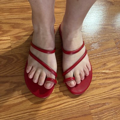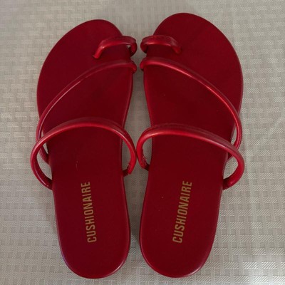 CUSHIONAIRE Resort Women’s Minimalist Strappy Sandals – Lightweight Summer Flat Sandals with Cushioned Footbed RED 6