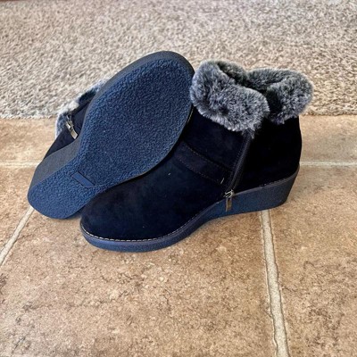 CUSHIONAIRE Women's Rhodes Faux Suede Winter Booties – Fur Boots for Women with Memory Foam, Comfy Boots with Faux Fur,Side Zipper, 2-Inch Wedge Heel - 1 of 4