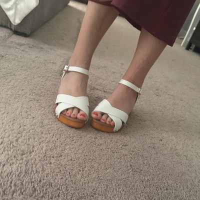 Meet Slate by CUSHIONAIRE—the easy, elevated sandal that blends vintage charm with modern comfort. A faux wooden heel and platform create a stable base that looks like wood yet feels surprisingly light. Soft faux-leather straps cross the forefoot, while a slim ankle strap with an adjustable buckle locks in a secure, personalized fit. Inside, a cushioned footbed and gentle arch support help reduce fatigue so you can move from errands to evenings without changing shoes. The silhouette delivers that just-right lift many shoppers want from wooden heels for women without the stiff feel of traditional clogs. The low platform smooths out the pitch, so steps feel natural and balanced. If you love platform sandals and need something you can actually walk in, Slate’s sturdy platform block heel and grippy outsole keep you steady on sidewalks, dance floors, and everything in between. Style it up or down—this closet staple complements summer dresses, cropped denim, and wide-leg trousers. Fans of chunky platform sandals will appreciate the retro profile; anyone searching for everyday heels for women will love the comfort-first build. The criss-cross upper adds flattering coverage, while the open toe keeps things breezy. Looking for a neutral pair you’ll wear on repeat? Slate delivers the versatility of platform heels with the comfort you expect from CUSHIONAIRE.