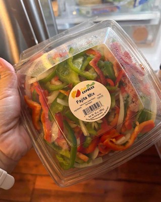 - Fajita mix includes freshly sliced red bell peppers, green bell peppers, white onion.