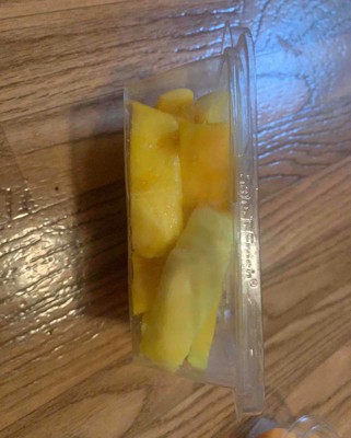 [This review was collected as part of a promotion.] I thought this mango was very sweet what I love about it the most is that it’s already cut up for convenience. It’s a little on the pricey side for the amount you get, but you’re paying for the convenience it was beautiful and color and would look great on a platter. I received an incentive to write this review.