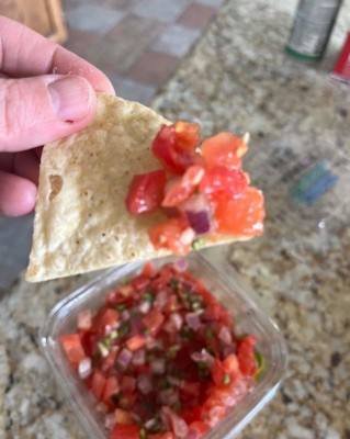 [This review was collected as part of a promotion.] I thought this pico de Gallo was very good. considering the tomatoes were already chopped up it seemed to be pretty fresh. My only complaint is that I felt like it didn’t have enough cilantro. I ended up adding more to mine. I ate this with chips, but I plan to add it on top of tamales. I received an incentive to write this review.