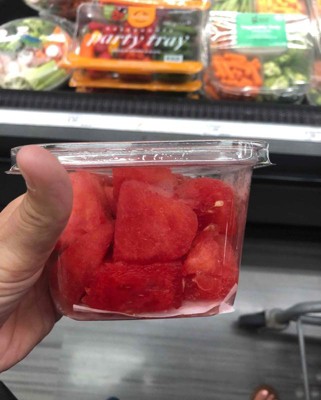This watermelon is juicy, fresh, and full of flavor. The small container and cut pieces make it convenient and ready to eat. This is great for a snack or a side to a meal. I picked this up and brought it for a picnic lunch. I would definitely recommend and purchase again. I received an incentive to write this review.