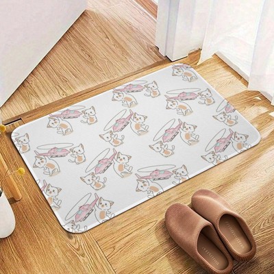 Cute Cat Is Playing With Yarn Bathroom Rugs Winter Bath Mat Absorbent Non Slip Bathroom Mat Christmas Soft Floor Carpet 16x20 Inches