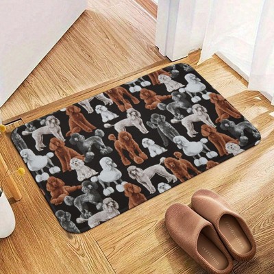 Cute Poodles Bathroom Rugs Winter Bath Mat Absorbent Non Slip Bathroom Mat Christmas Soft Floor Carpet 16x20 Inches - 1 of 1