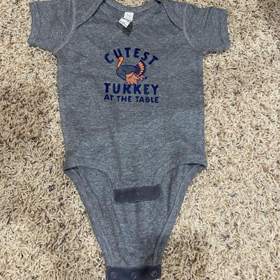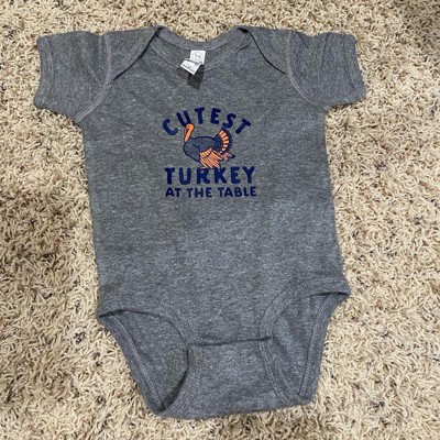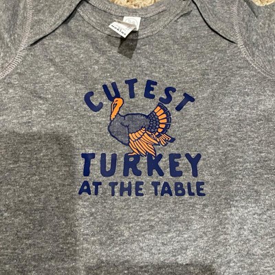 Cutest Turkey At The Table Baby Bodysuit Funny Cute Thanksgiving Dinner Jumper for Infants - Crazy Dog Baby Bodysuit for Thanksgiving Dark Grey 6