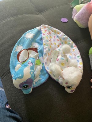 [This review was collected as part of a promotion.] This is a surprisingly cute and fun soft toy. Each and wrapped in blankets and the pair come as best friends. We haven’t tried washing them but can assume they could be tossed in the washer easily and left to air dry.
