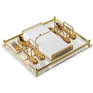 - ELEGANT ACRYLIC DESIGN - Add a touch of sophistication to your dining area with this acrylic napkin and utensil holder. Party ready, the sleek design and metallic accents in silver or gold complement any decor, all while keeping your cutlery neatly organized.