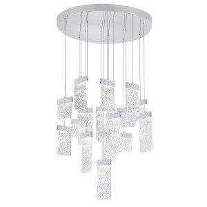 Edgy but with a soft and feminine essence, the Carolina Pewter 32 inch LED Chandelier is ready to give your home an elegant finish without making your interiors look and feel stuffy. This modern down chandelier features a round canopy holding 16 textured clear glass panels with integrated LED chips. This light source easily adds contrast, layer, texture, and style to wherever it is placed