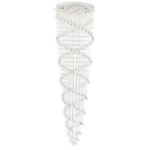 The Double Spiral 9 Light Flush Mount Chandelier can provide any space with astonishing glow. This luxurious light fixture is designed with finely crafted strings of clear crystals, two of which form a graceful spiral. Reflecting an abundance of light and sparkle, this glitzy chandelier promises to elevate the luxury vibe in your home. it is perfect for the stairwell, a foyer with a high ceiling, or in your extra spacious living room