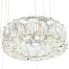 Soften the hard surfaces and edges in your home with the presence of this Madeline 6 Ring LED Chandelier. Ready to balance angles are xix 10 inch by 3 inch crystal rings that cascade from a round chrome canopy. Position this in the stairwell, foyer, in your high-ceiling living room, or anywhere that needs a shot of glamour