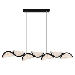 Introducing the Moon Integrated LED Chandelier, a breathtaking centerpiece that combines modern elegance with artisanal craftsmanship. This stunning chandelier features a sleek black finish, adding a touch of bold sophistication to any room. Its crescent-shaped panels, made from handcrafted glass, are intricately textured to capture the glowing essence of the moon, casting a warm, ambient light throughout your space. Each glass piece is uniquely crafted, ensuring every chandelier is a one-of-a-kind work of art. The contrast between the refined black finish and the luminous, handcrafted glass creates a striking visual impact, making the Moon Chandelier the perfect statement piece for dining rooms, living spaces, or grand entryways. Illuminate your home with the celestial beauty of this extraordinary chandelier, where craftsmanship meets cosmic elegance