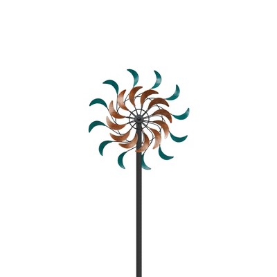 - 【Elegant & Retro Zinnia Design】Featuring a beautiful copper and teal color finish with leaf motifs, this wind spinner boasts dual-direction rotors that spin 360 degrees smoothly. Its sturdy pole and reinforced metal stake provide stability even on windy days.