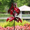 - BEAUTIFUL TULIP DESIGN: This stunning metal yard spinners features a lovely red finish and tulip design. Dual rotors spin independently and rotate 360 degrees. The kinetic yard wind spinners has thickened poles (diameter 22mm, 40% thicker than others) and stable metal stake with three prongs to ensure its firmly planted for windy days and against a snowy landscape.