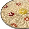 Poetic yet practical, the Cymbeline Side Table brightens up even the smallest spaces. Crafted with a rust and gold glass floral mosaic top with graceful iron tripod legs, this artistic piece is amazing beside a sofa or chair and equally attractive in a bedroom or bath.