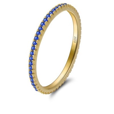 Experience timeless elegance with the Cynthia Sterling Silver Clear Cubic Zirconia Anniversary Ring Wedding Band, exclusively from the Ginger Lyne Collection. This exquisite ring is expertly crafted from Authentic Stamped 925 Sterling Silver, ensuring long-lasting wear and a luminous finish. Complementing its premium construction is a Rhodium plating that enhances the ring's durability and shine. This luxurious piece features nine AAA Quality, 1mm Round Cut Cubic Zirconia stones in clear and blue, carefully arranged to capture and reflect light for a dazzling display. With a graceful 2.5mm width, the Cynthia ring combines subtlety with sparkle, making it a perfect choice for anniversaries, weddings, or any occasion deserving of a special commemoration. As with all of our Sterling Silver pieces, this ring is made to our exact specifications, guaranteeing its superior workmanship and authenticity.