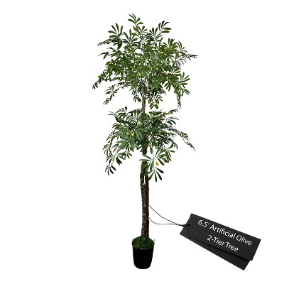 Cypress & Alabaster | Handmade 6.5' Artificial Olive Canopy Tree In Home Basics Plastic Pot Made With Real Wood And Moss Accents