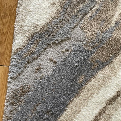 I like the color, pile and design, Cons: it look as though it’s missing carpet in one area. Returning for another hopefully this isn’t part of the design.