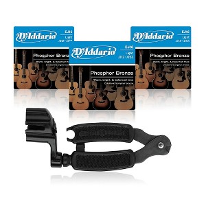 Three packs of D'Addario EJ16 stringsGauges: 12-16-24-32-42-53. These acoustic guitar strings feature a computer-controlled wrapping around a hex core. The popular alloy of phosphor bronze lends the depth needed to make a dreadnought guitar speak, while retaining the sparkle a fine instrument can produce.Pro-Winder String Winder/CutterThe Planet Waves Pro-Winder is a patented high-quality peg winder with a built-in string clipper. Ergonomically designed with hardened tool-steel wire cutters. The Pro-Winder enables to change strings with just a single tool. Easy and comfortable to use. Unconditionally guaranteed.