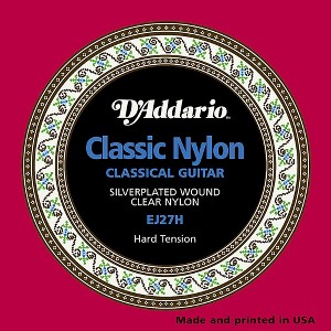 D'Addario EJ27H Hard Tension Classical Guitar Strings are great for beginners and students. The set contains 3 clear nylon trebles and 3 silverplated copper wound on nylon basses. EJ27H Student Grade strings provide a warm long lasting tone.