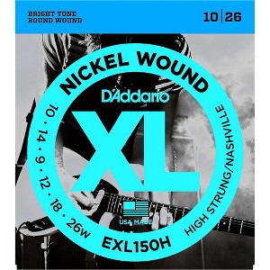The string of choice for rock musicians worldwide, known for its distinctive bright sound and excellent intonation. This High-Strung Nashville Tuning gauge basically uses the octave strings from a 12-string set to give a 12-string sound out of 6-string guitar.