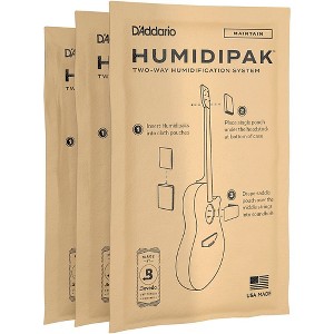 This 3-pack of replacement packets for Planet Waves' Humidipak humidification system is an affordable way to keep acoustic instrument at its proper relative humidity. The packets last from 2–6 months, so ordering a three pack can last anywhere from half a year to a year and a half.The patented, two-way Humidipak humidification system (sold separately) is a two-way humidity controller that's recommended by Taylor guitars and other leading manufacturers for maintaining the stability and playability of instrument. This humidification system maintains 45–50% relative humidity, eliminating all maintenance and guesswork. No more guessing if or when to refill the humidifier and worrying about drips or creating a mess. Unlike other refillable humidifiers, the Humidipak humidity controller acts as a gauge because it provides true two-way, purified humidity control. It adds or reduces moisture as needed to maintain proper relative humidity, which is the ideal climate for wooden instruments such as acoustic guitars.Just place two packets in the double pouch, place the double pouch over D and G strings, and let it hang down into the soundhole. Place the third Humidipak replacement packet under guitar's headstock while in its case. Close the case and 're done. The packet will last anywhere from 2-6 months, depending on the humidity where instrument is located. When the Humidipak packet becomes firm, discard it and replace it with another Humidipak replacement packet.